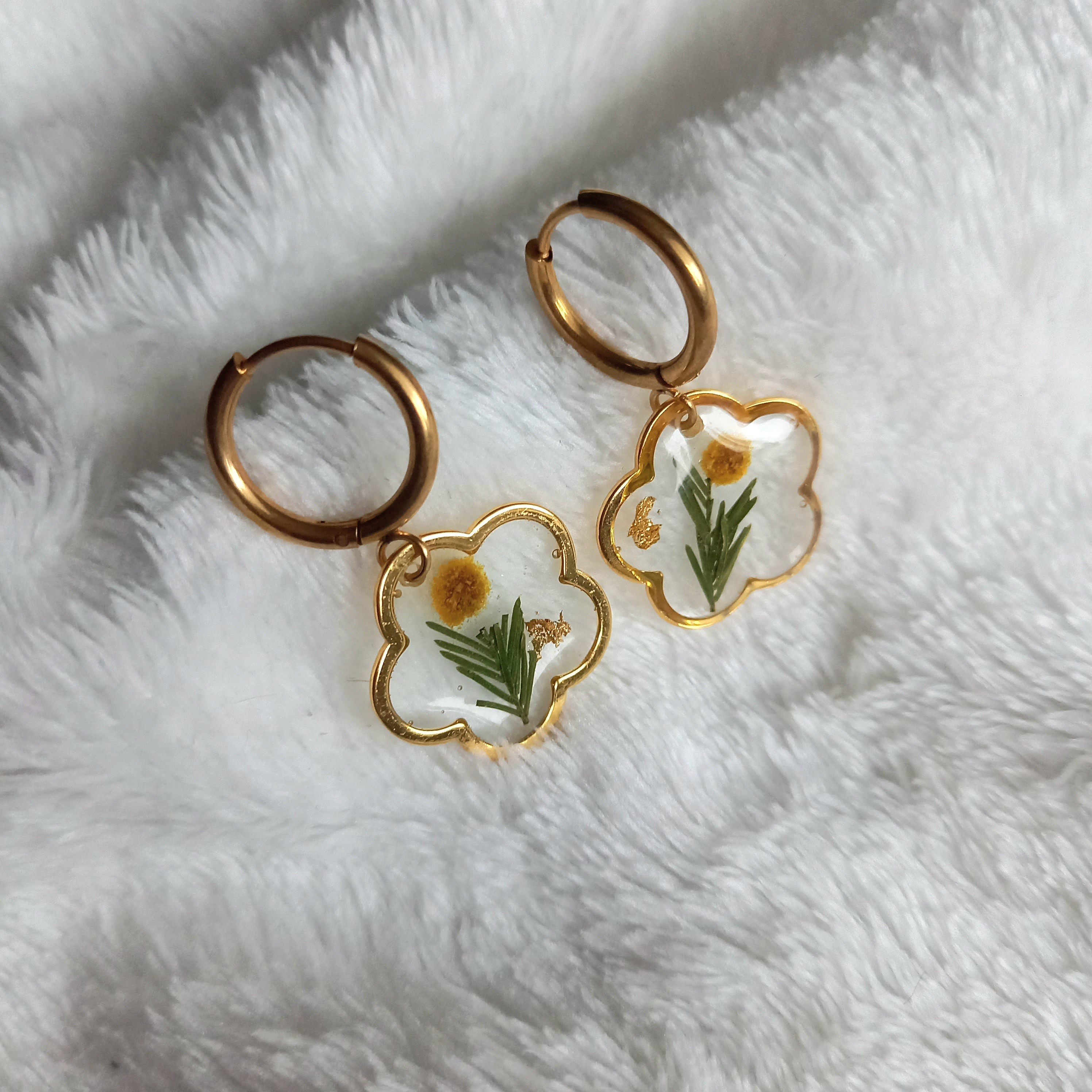 Boucles d'oreilles petites fleurs de Mimosa
