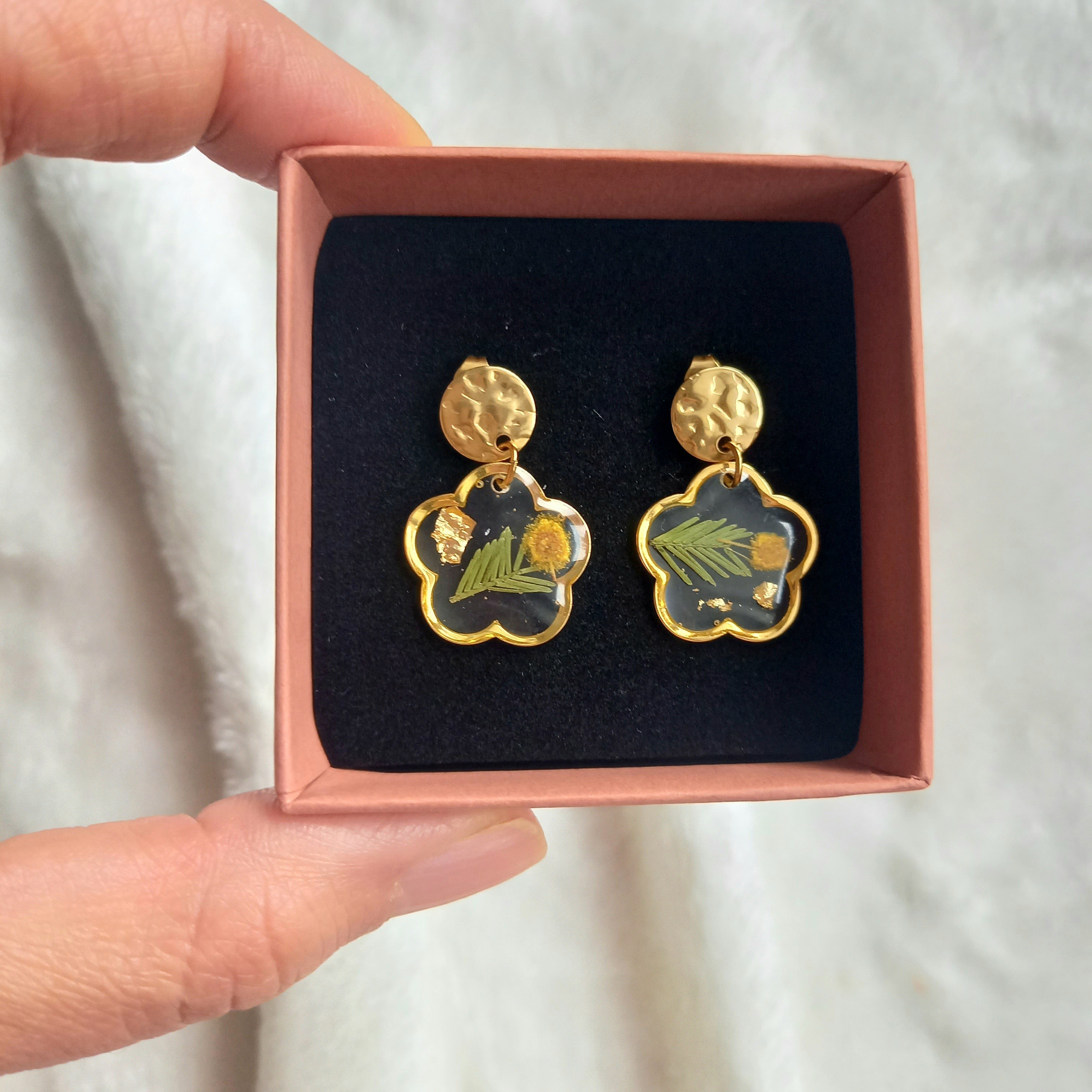 Effet romantique et bohème assuré, avec un bijou unique fait main à partir de véritables fleurs pressées. Un accessoire unique pour ajouter une touche de nature à votre tenue.